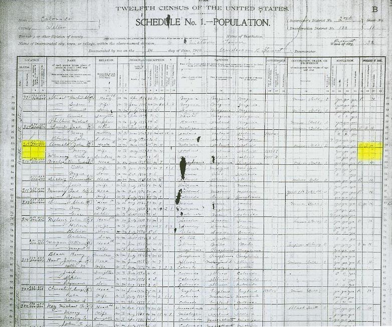 This Victor, CO US Federal census for 1900 shows John Arnold and his wife Mary living in Victor, CO in 1900. It also shows Katie McEnany. Katie is listed as John Arnold's sister-in-law. Notice it does not show brother Peter or cousin Patrick Kernan, even though they were on the same ship as Katie and were shown with the same final destination as Katie.