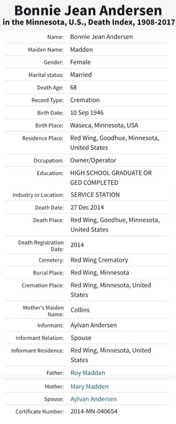 Bonnie Jean (nee Madden) Anderson