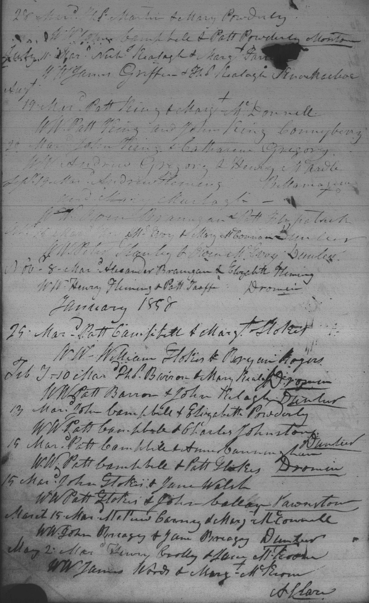 Note 2: The Thomas Barron / Mary Kealy/Kealagh entry is the 2nd entry after the "January 1858" heading.