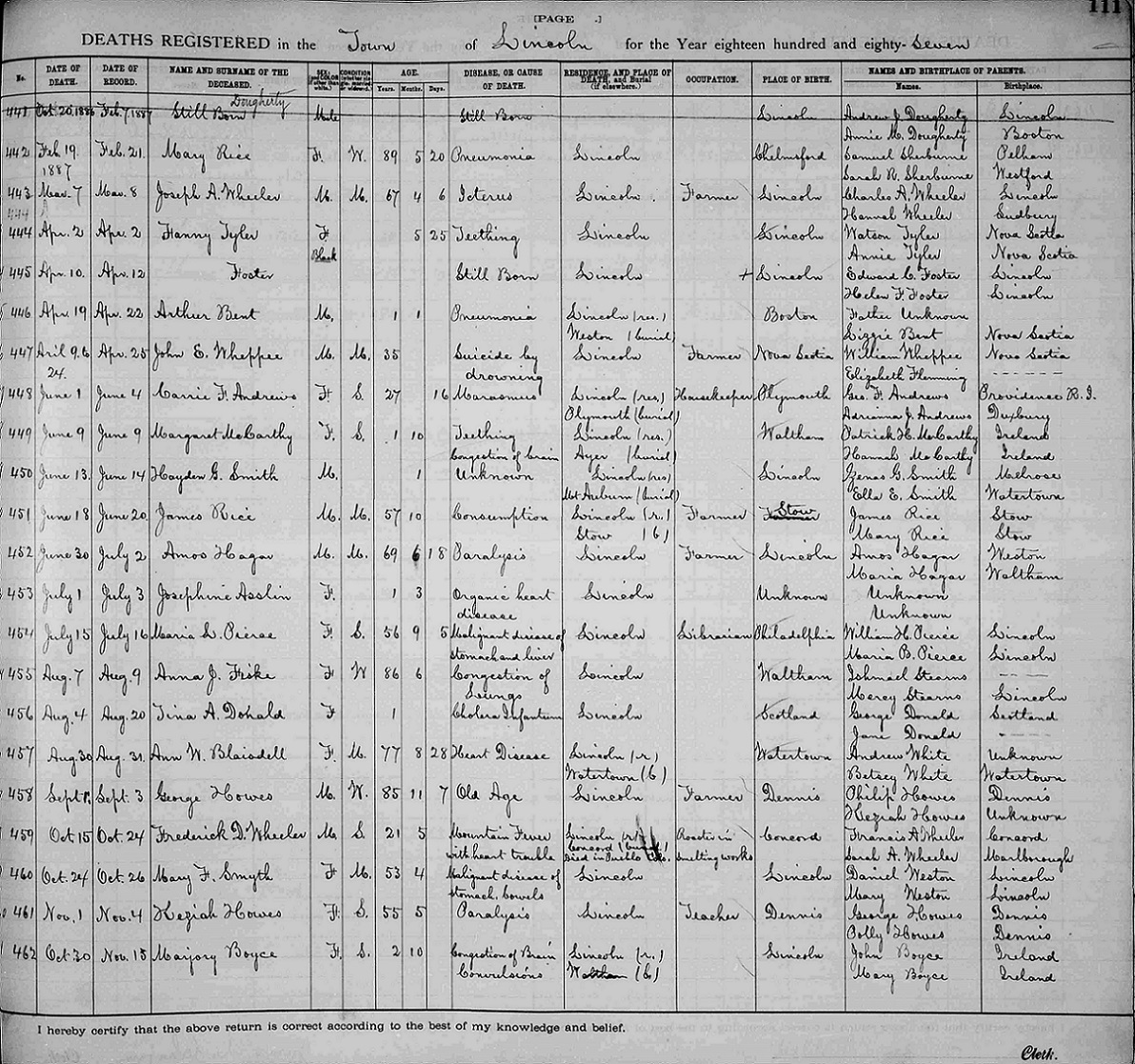 Margaret Boyce Died Oct. 30, 1887 Lincoln, MA, USA