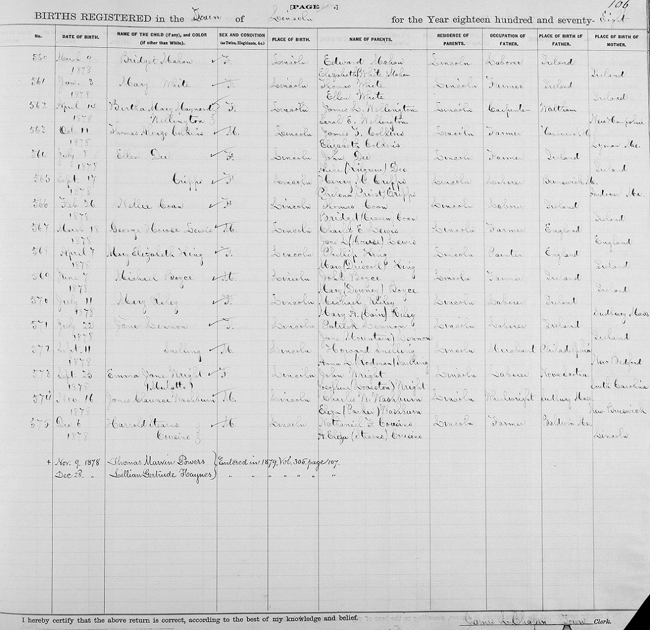 Michael J. Boyce Born Jun. 7, 1878 Lincoln, MA, USA