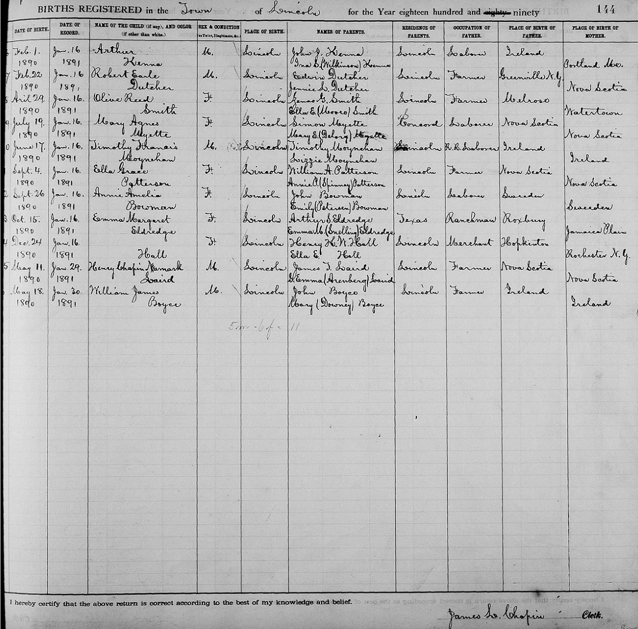 William James Boyce Born May 18, 1890 Lincoln, MA, USA