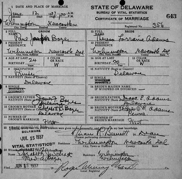 Paul Joseph Boyer / (Theresa) Lorraine Adams