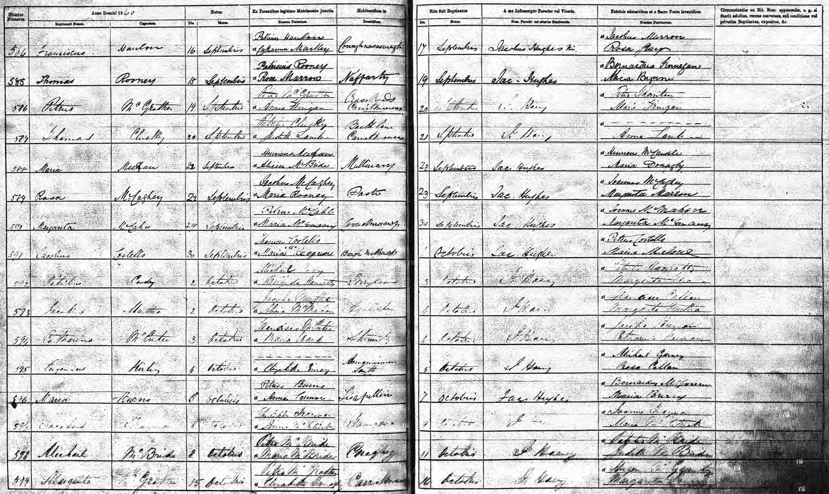 Note 2: The Mary Burns entry is entry #596, the 4th entry up from the bottom of the page.