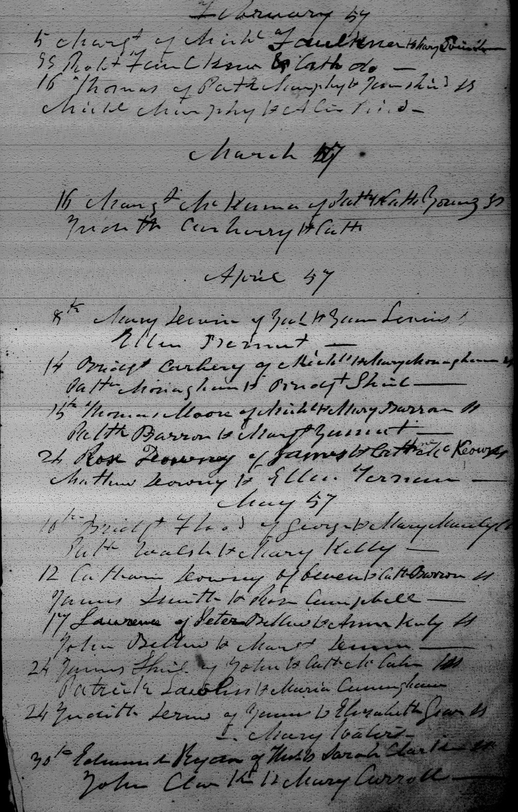 Note 2: Bridget Carberry is the second entry after the April 57 heading.