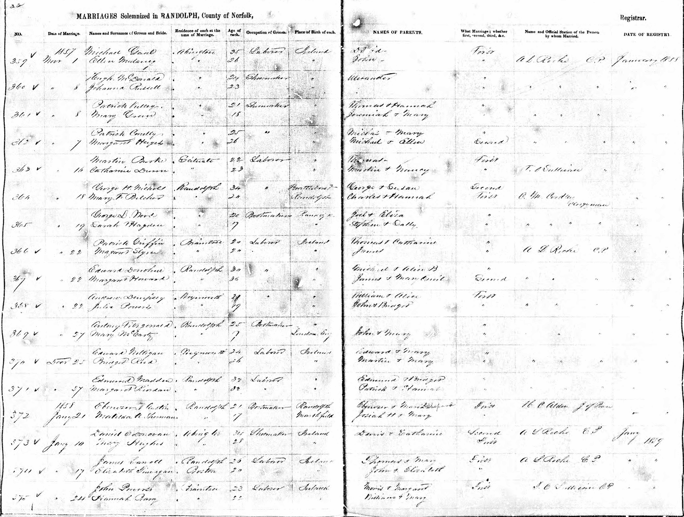 Note 1: The James Carroll / Elizabeth E. Finnegan entry is the next to last entry on the page.