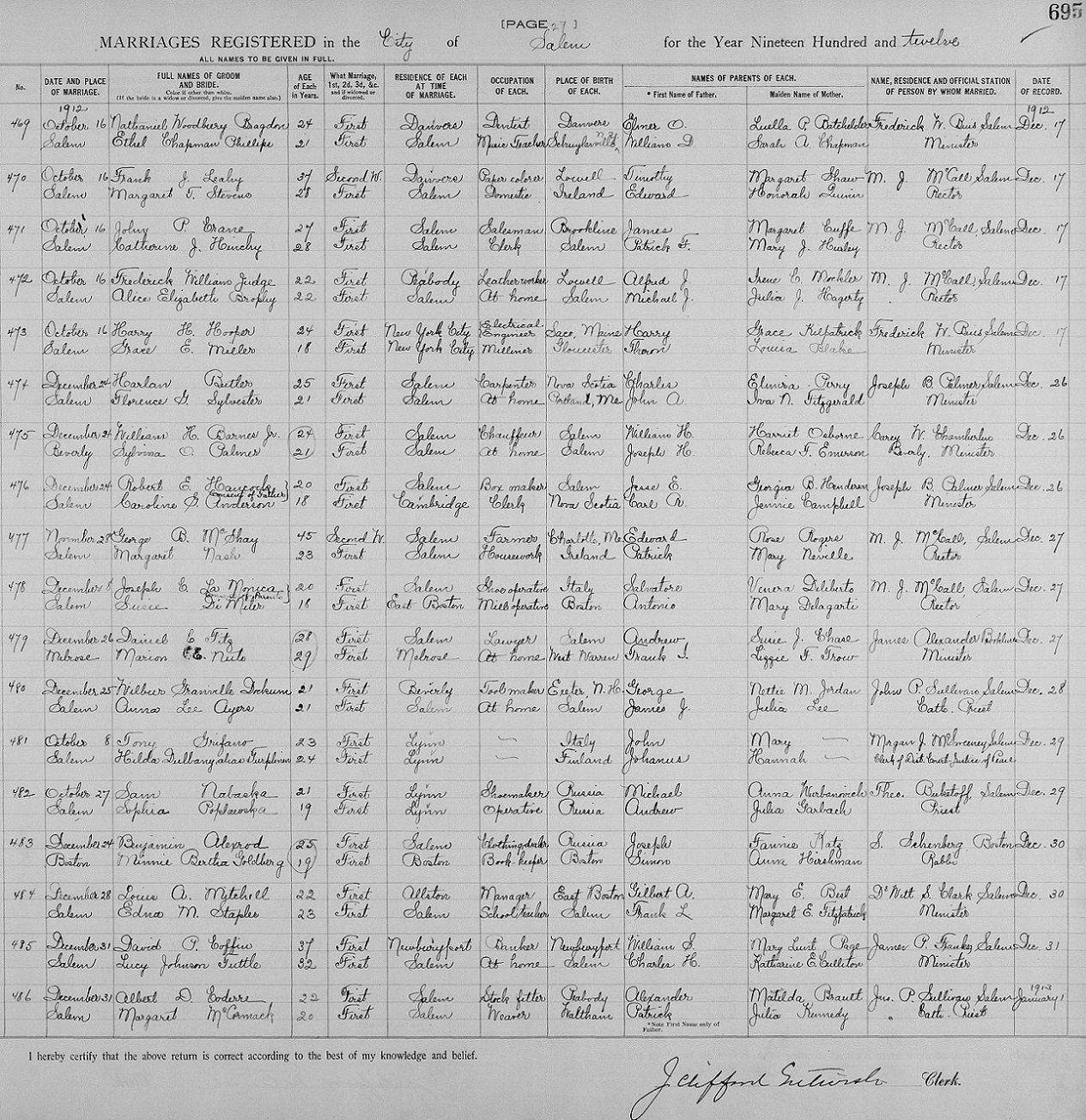 Married December 31, 1912