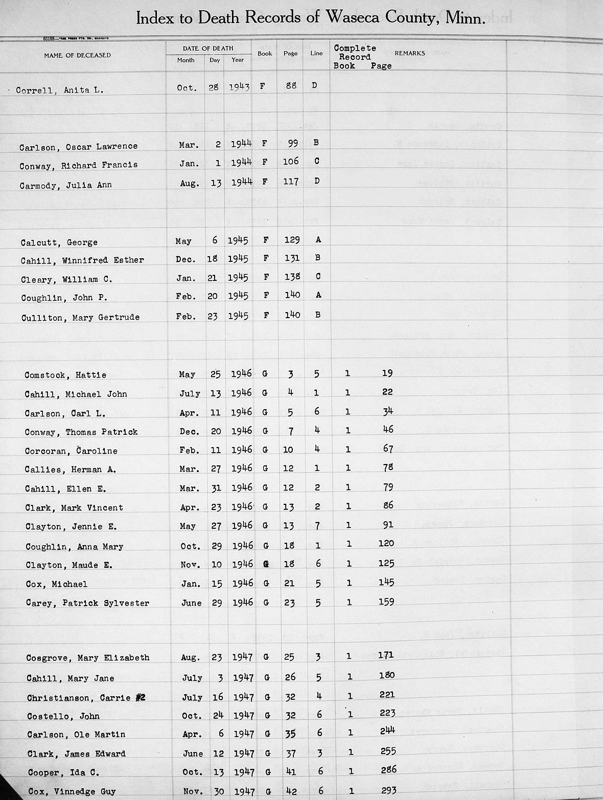 Note 1: The Mary Elizabeth (nee McGrath) Cosgrove entry is the 1st entry for the year 1947.