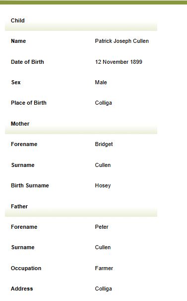 Larry's Peter and Bridget (nee Hoxey) Cullen Family Page