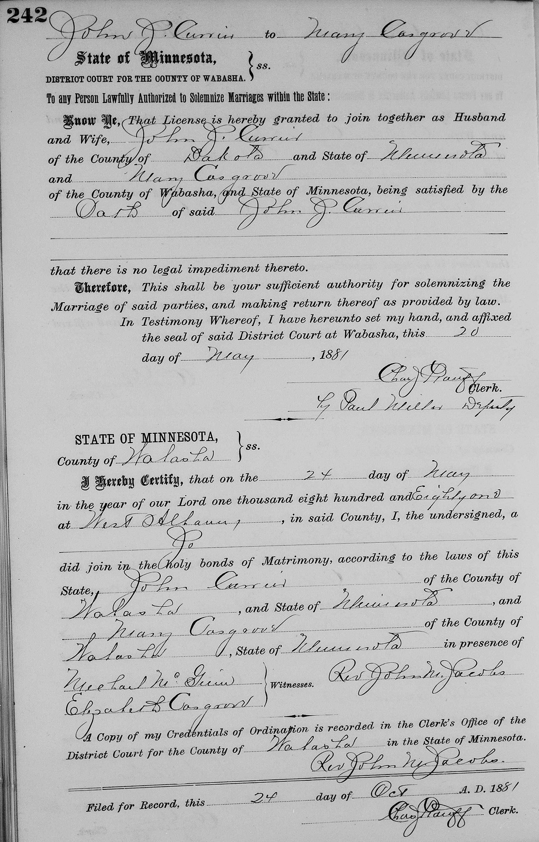 John J. Currier / Maria/Mary J. Cosgrove