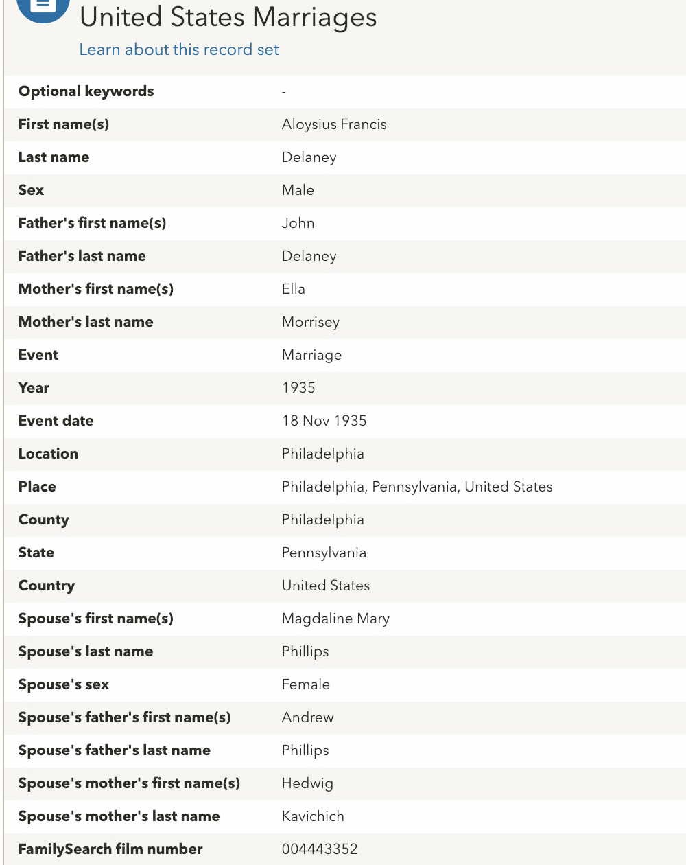 Larry's Aloysius F. and Magdaline Marie (nee Phillips) Delaney Family Page