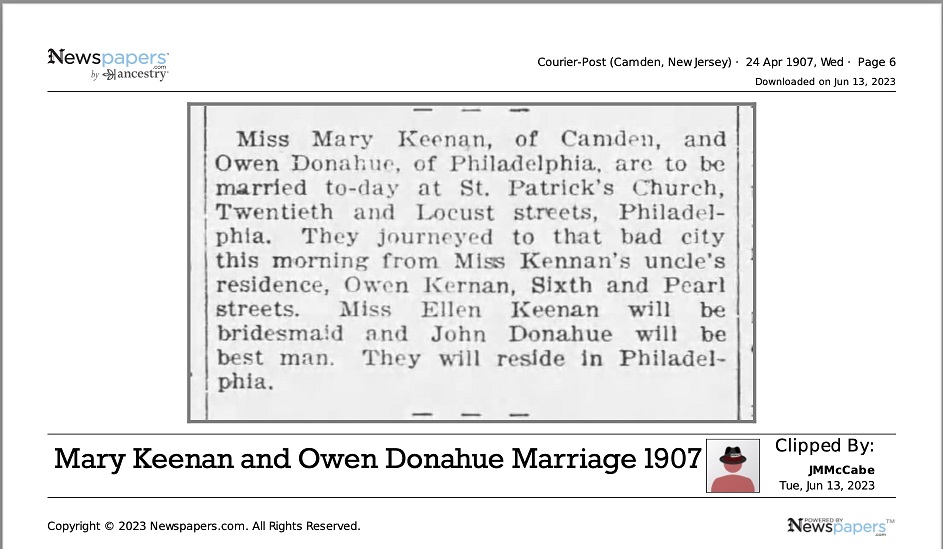 Larry's Owen J. and Mary (nee Keenan) Donohue Family Page