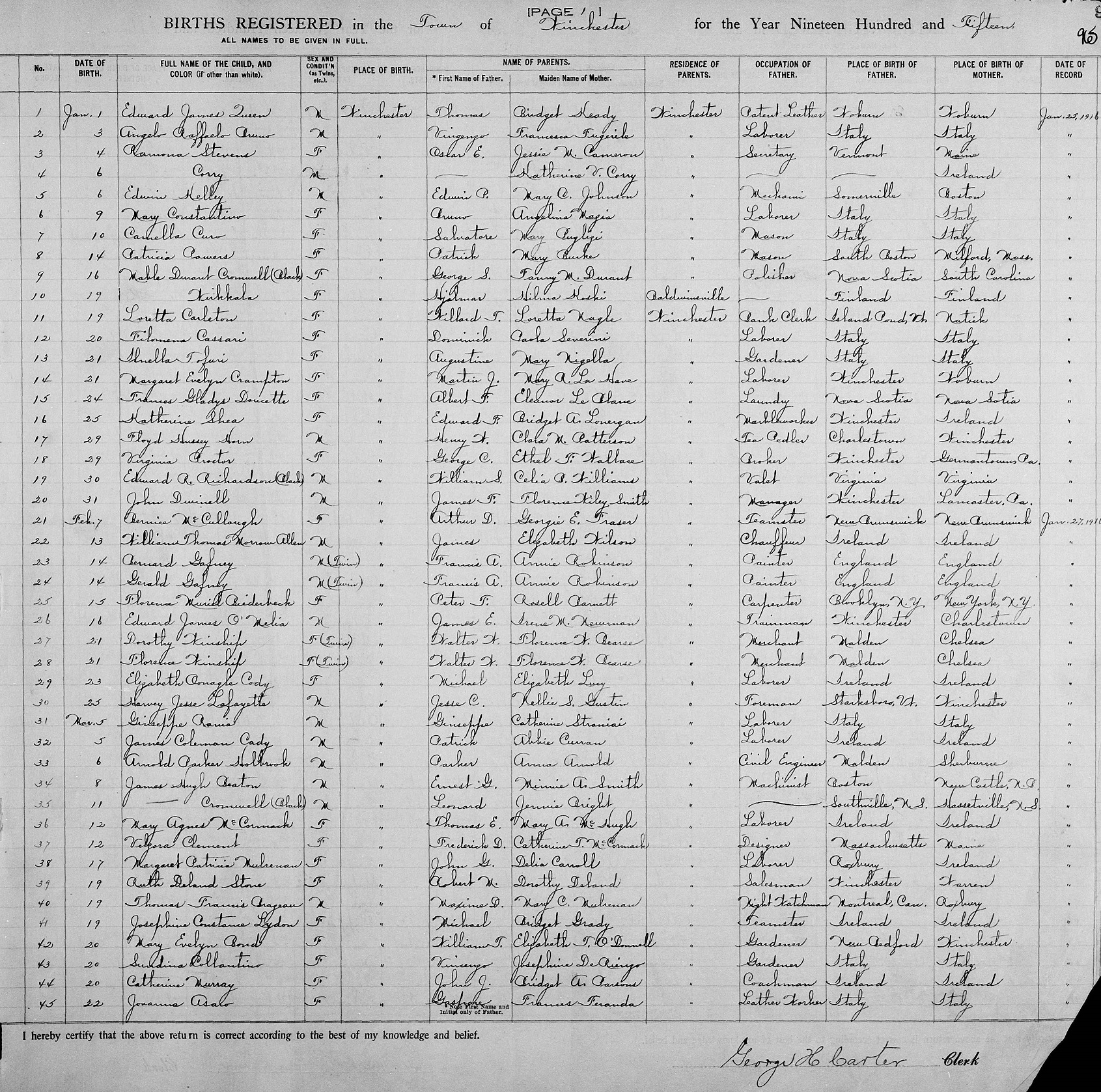 Note 1: The Gladys Ftances Doucette entry is entry #15, the 15th entry down the page.