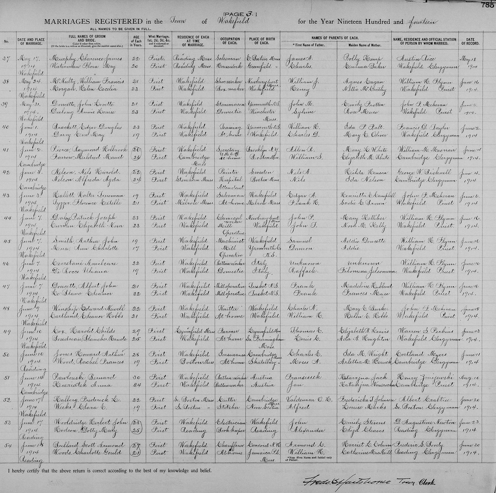 Note 1: The Albert Frank Doucette / Eleanor Frances LeBlanc entry is entry #47, the 11th entry down the page.