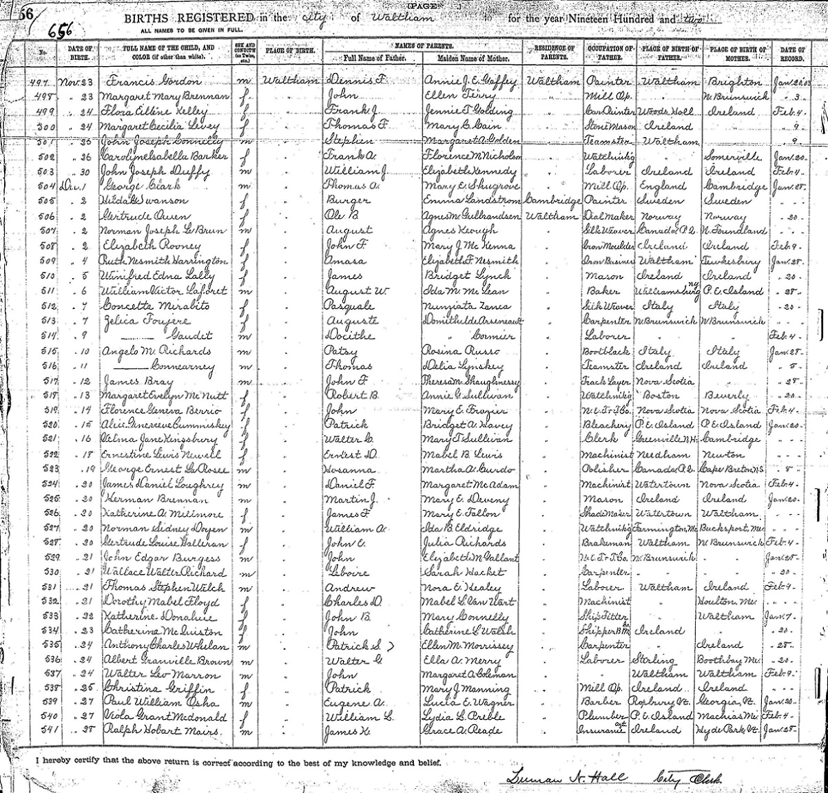 Note 1: The John Joseph Duffy entry is entry number 503, the 7th entry down the page.