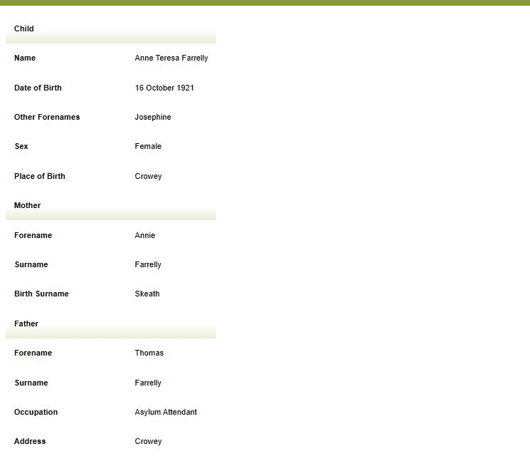 Transcript from website irishgenealogy.ie