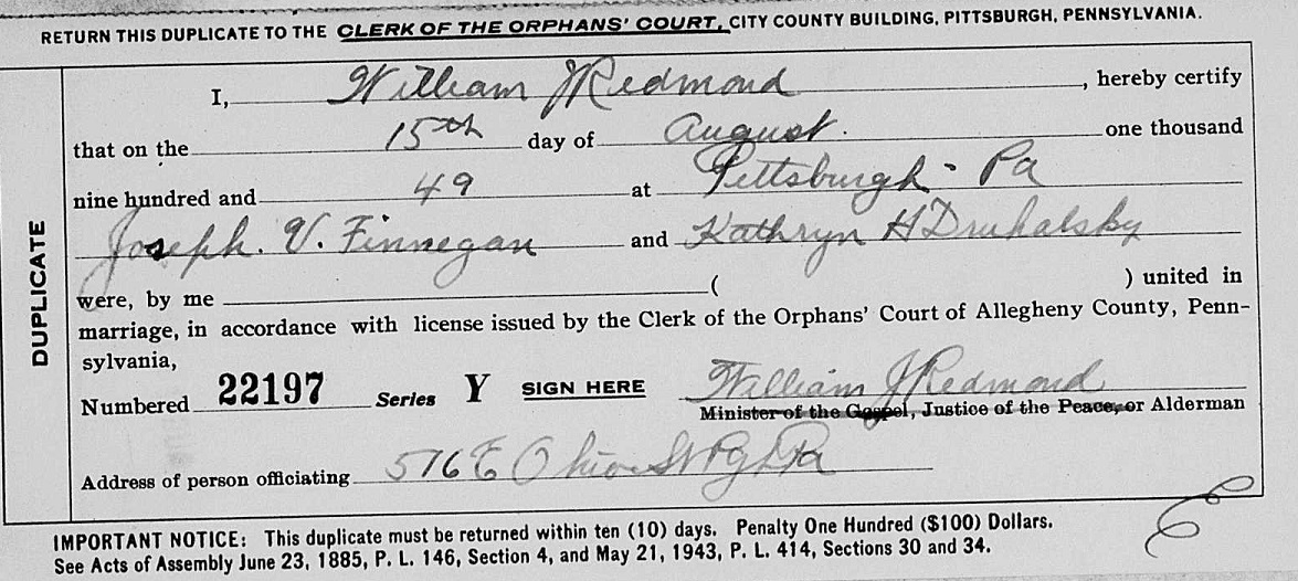 Joseph V. Finnegan / Kathryn H. Drukalsky