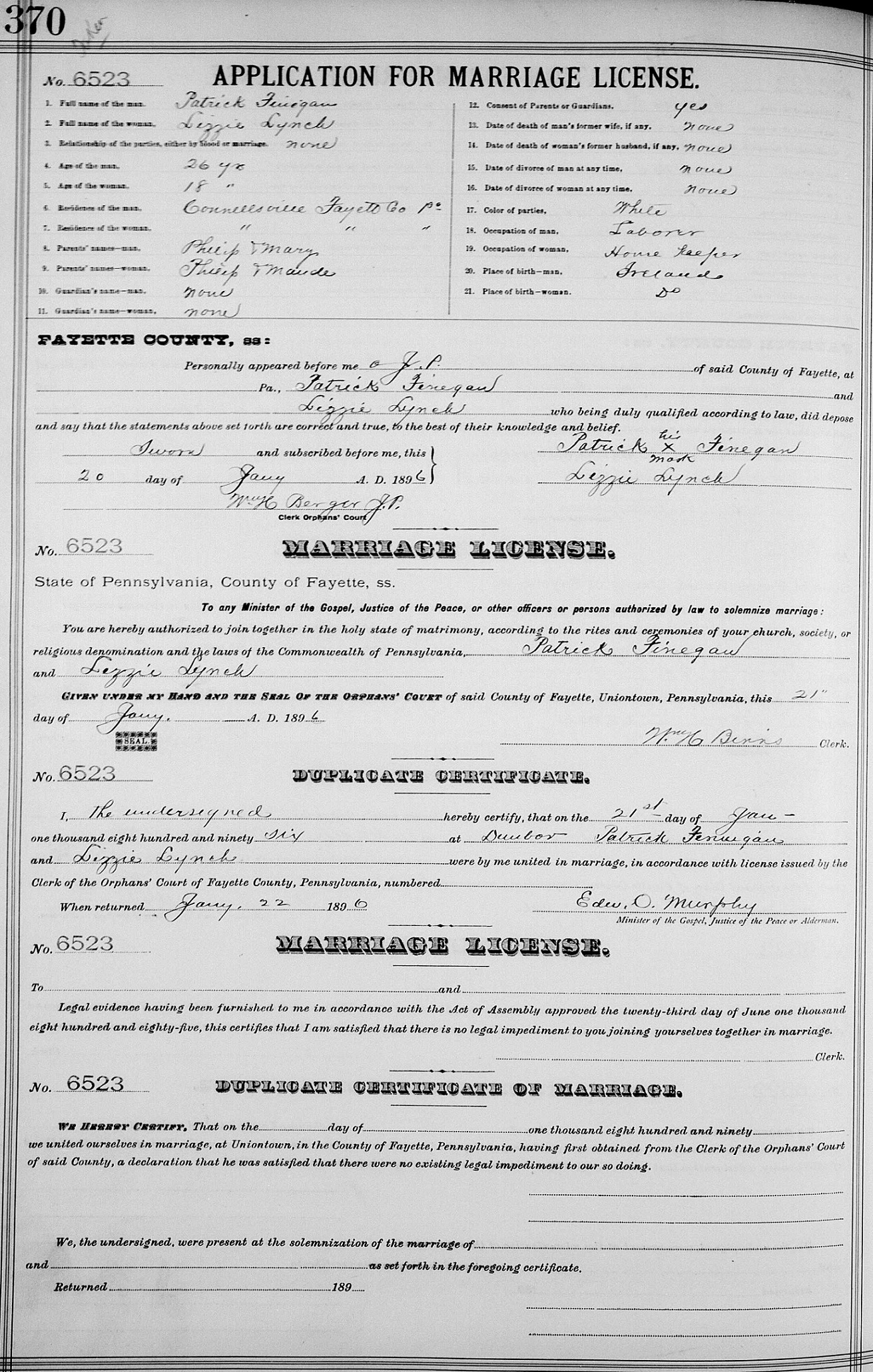Married January 21, 1896