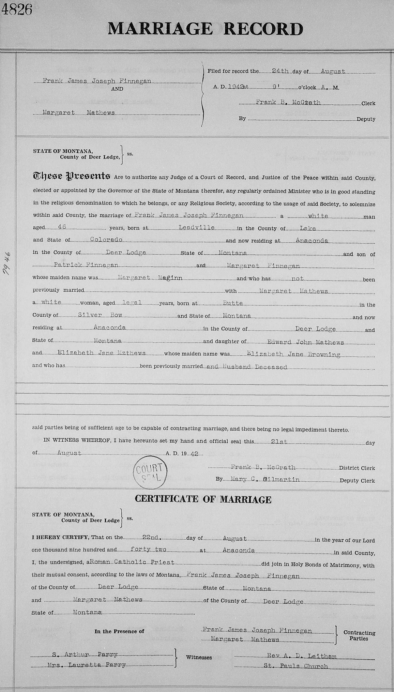 Francis "Frank" James Joseph Finnegan/ Margaret Mathews