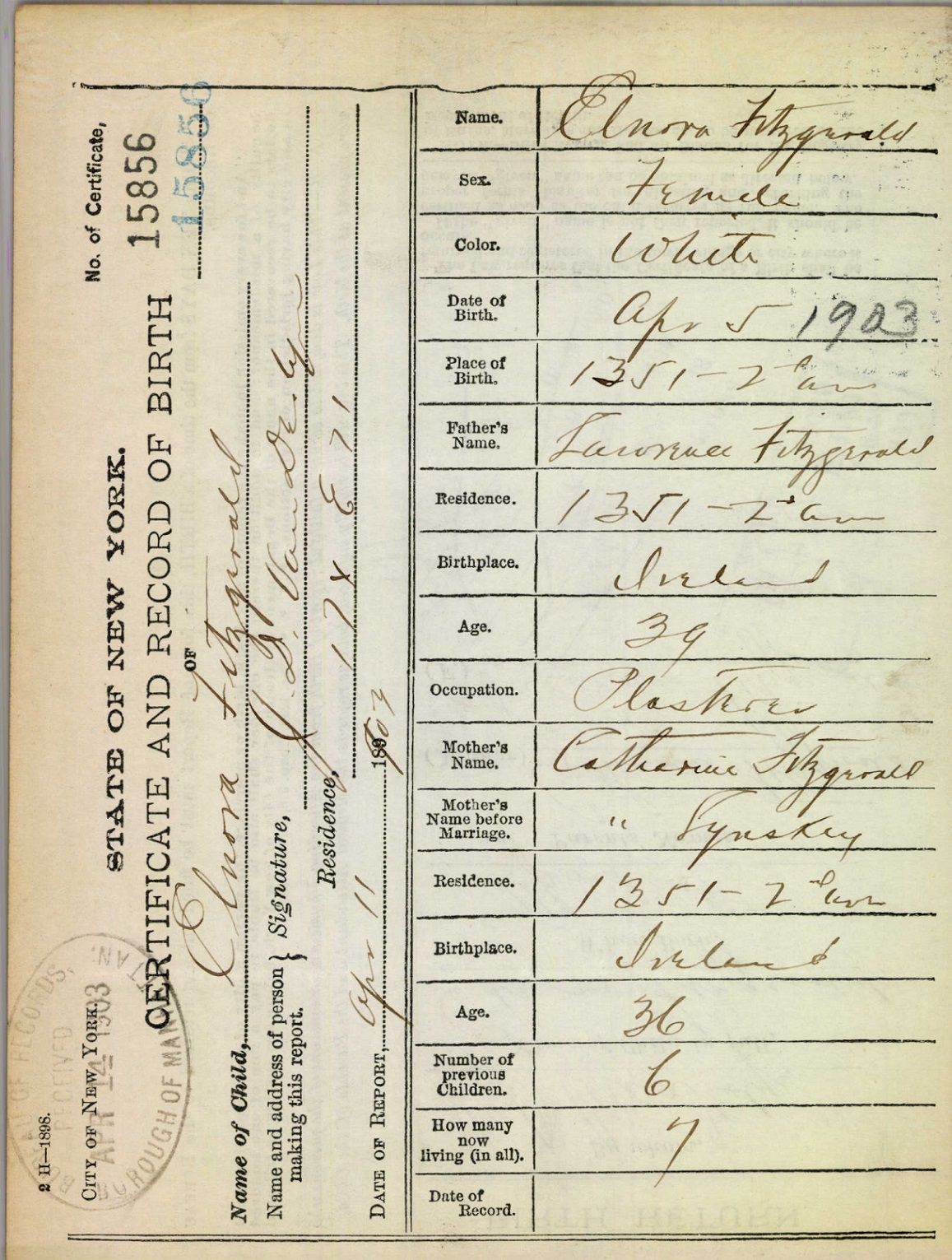Elenor Fitzgerald Born April 5, 1903 Manhatten, NY, USA