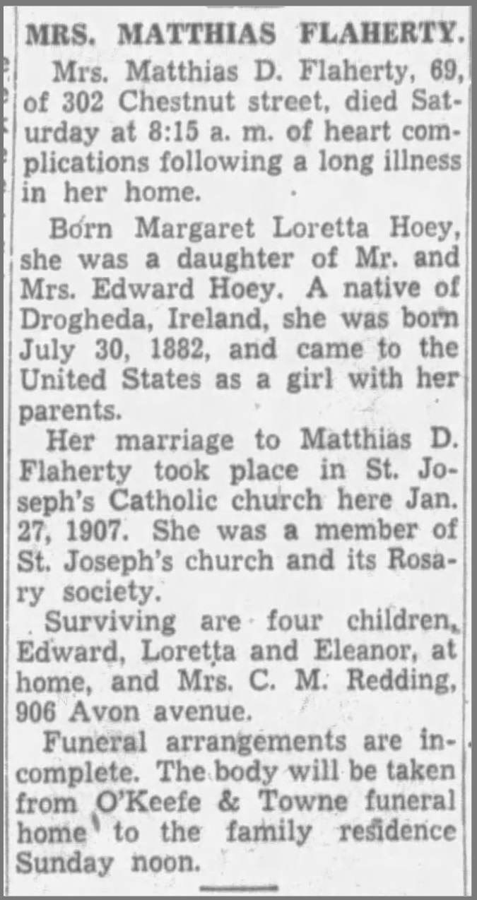 Larry's Edward and Catherine (nee Tenanty) Hoey Family Page