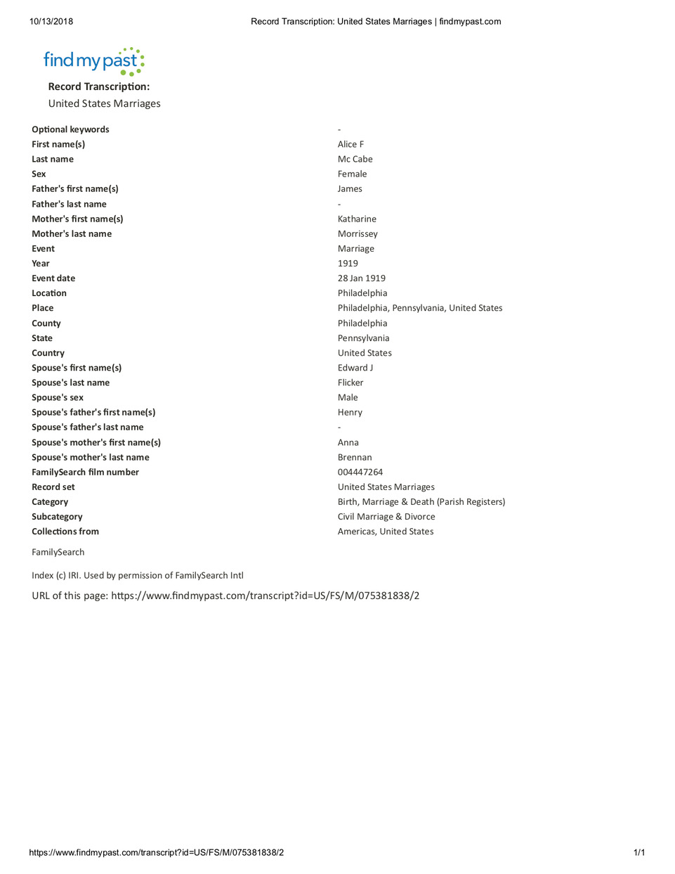 Larry's Peter and Bridget (nee Murphy) McCabe Family Page