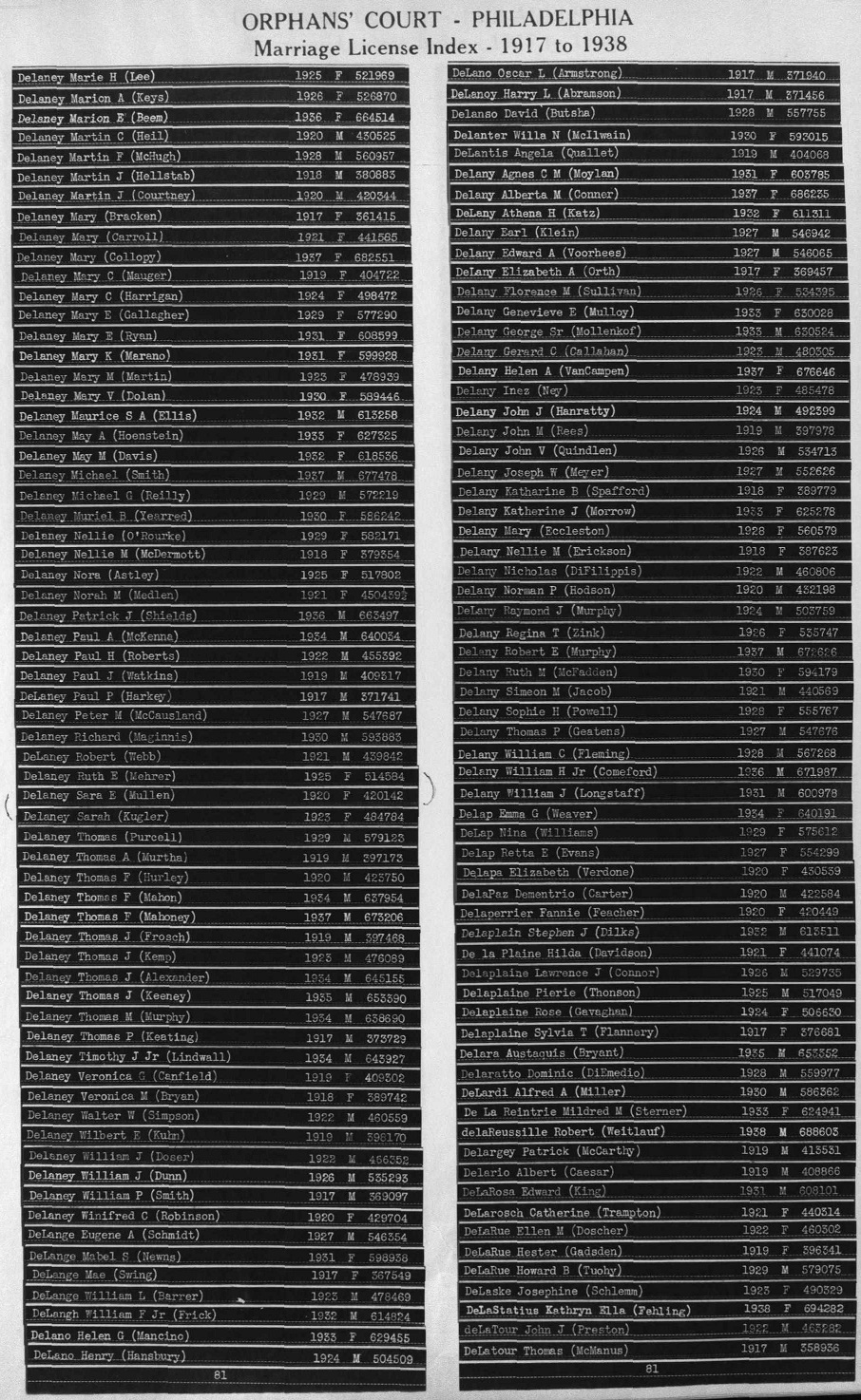 Note 1: The Mary E. Delaney entry is in the left column, the 1st Mary E. entry.