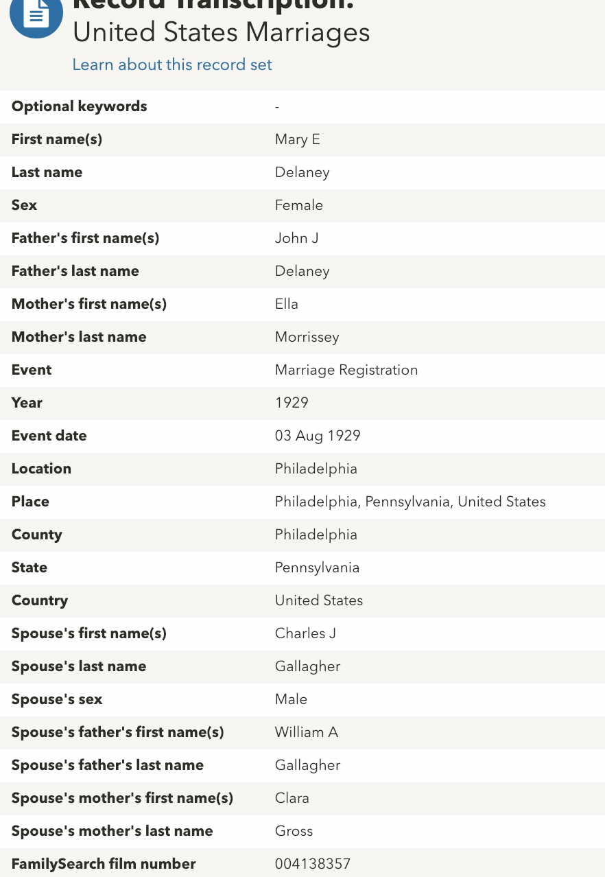 Larry's Charles J. and Mary E. (nee Delaney) Gallagher Family Page