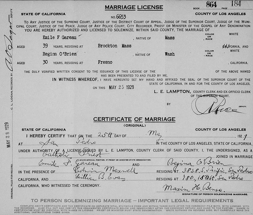 Note 1: Marriage license on top. Marriage certificate on the bottom.
