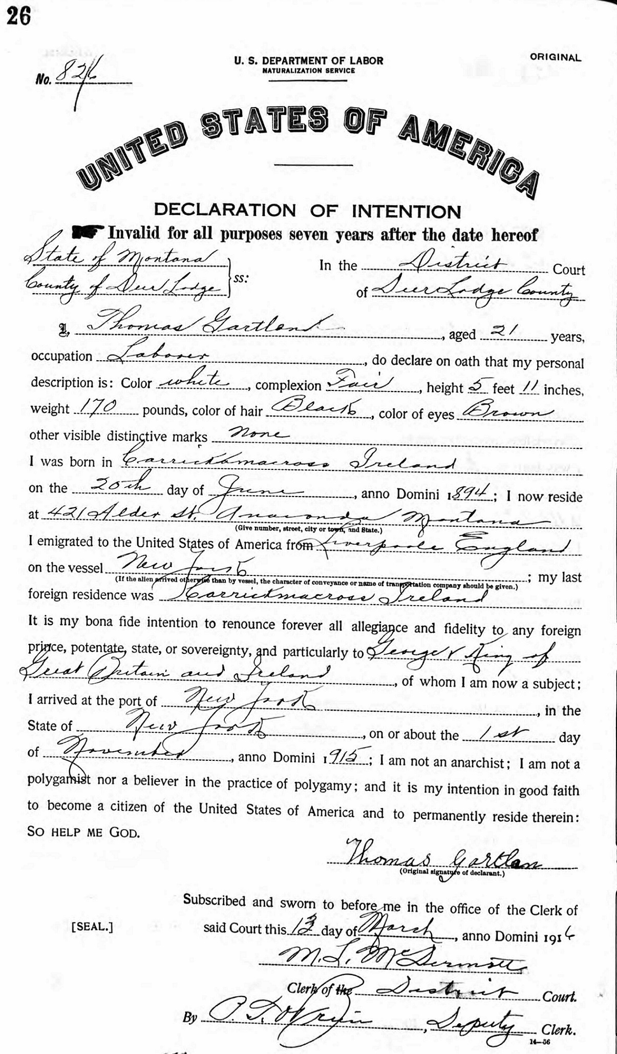 Declaration Of Intention
