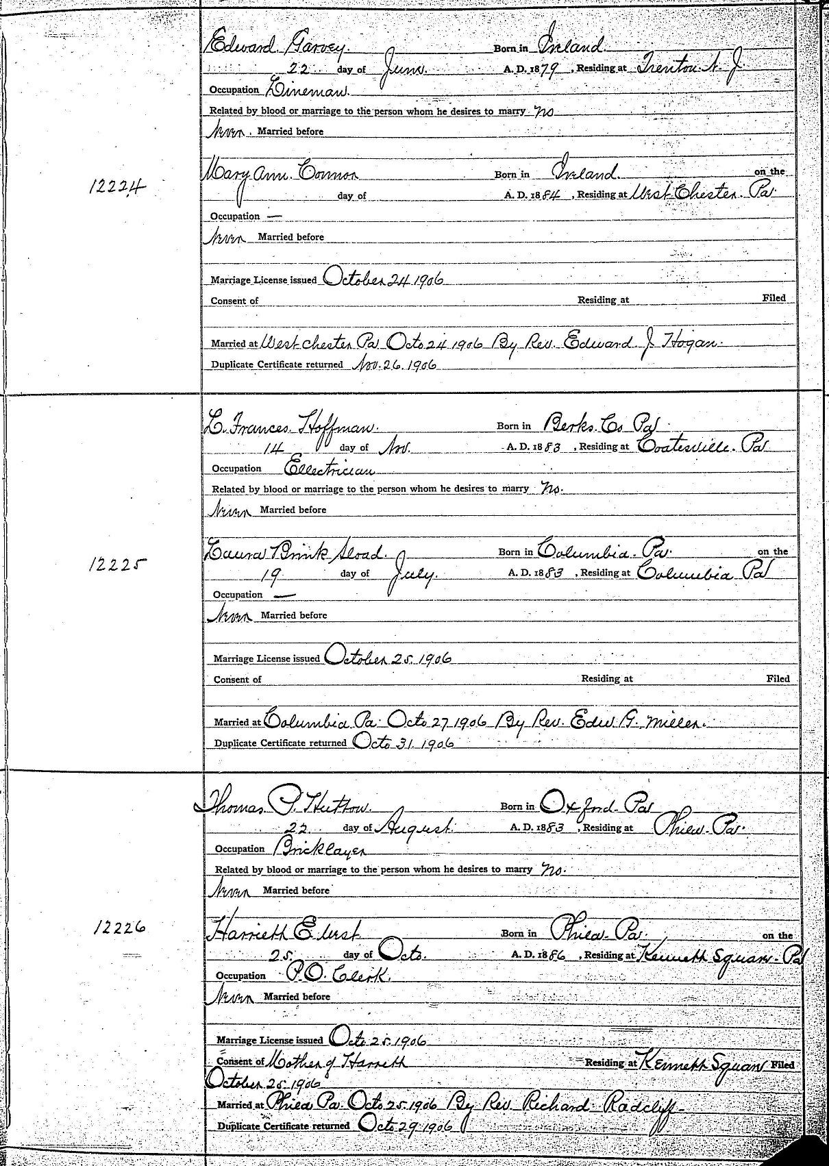 Note 1: The Edward Garvey / Mary Ann Connor/O'Connor entry is entry #12224, the 1st entry on the page.