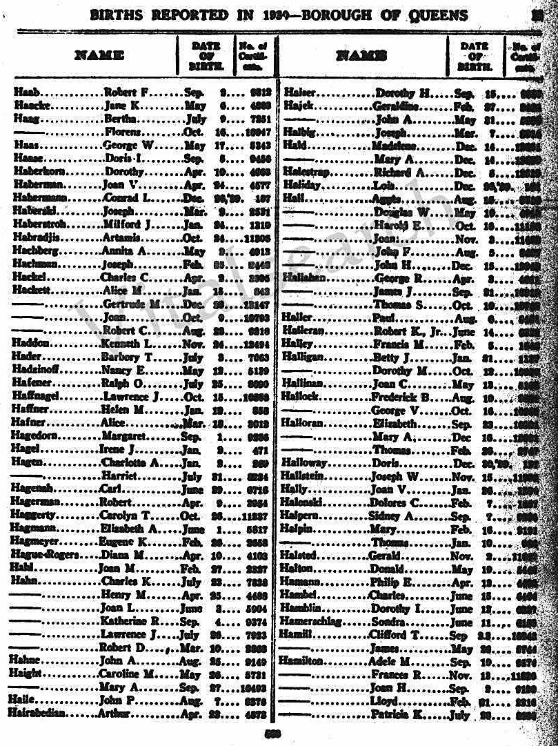 Note 1: The Dorothy "Dolly" Marie Halligan entry is in the right column, about halfway down the page.