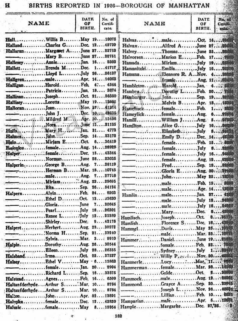 Note 1: The Patricia Ann Halligan entry is the 10th entry in the left column.