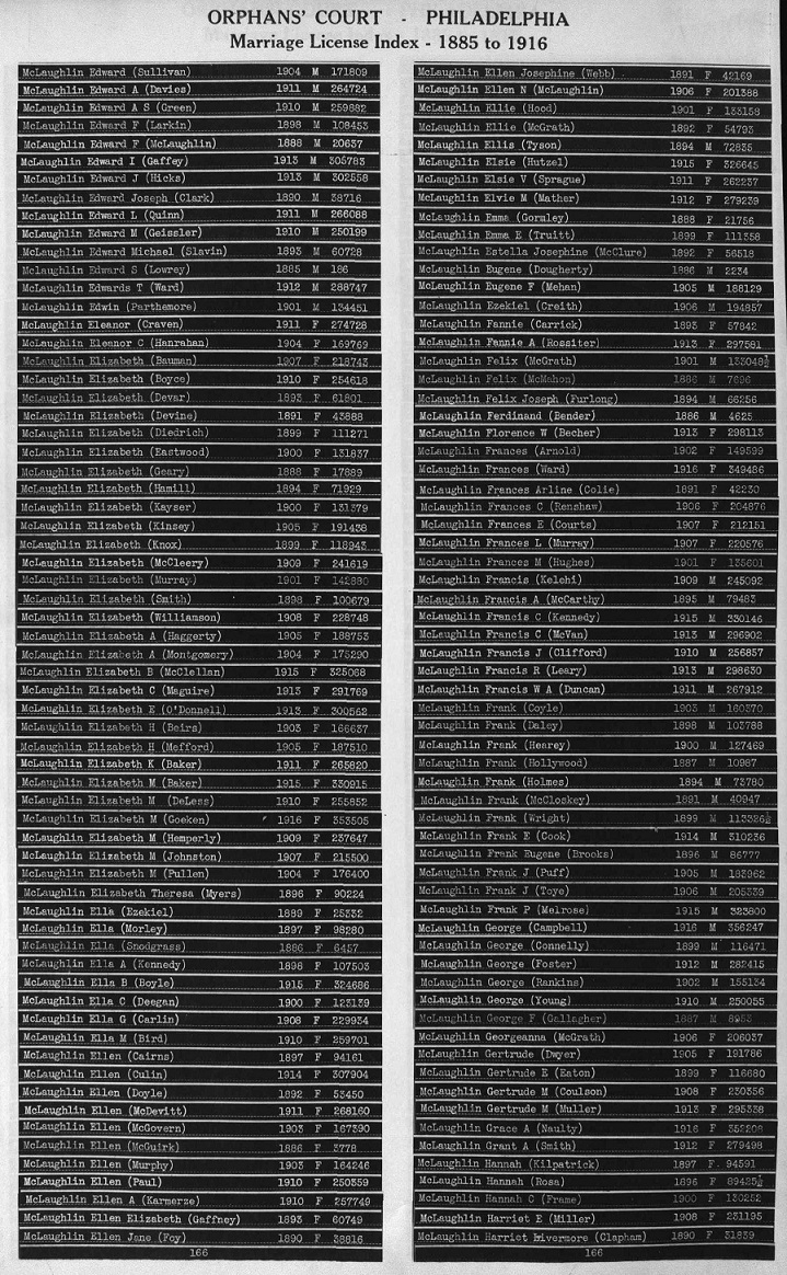 Elizabeth McLaughlin Married John Hamill 1894 Philadelphia, PA License # 71929