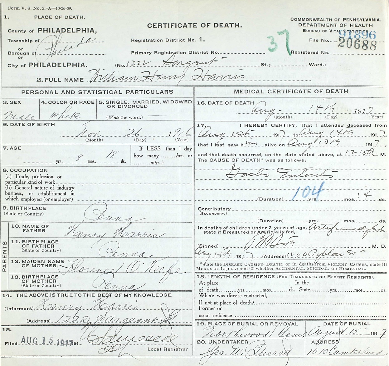 Died August 14, 1917