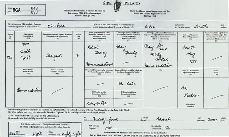 Larry's Robert and Mary (nee McCabe) Hearty Family Page