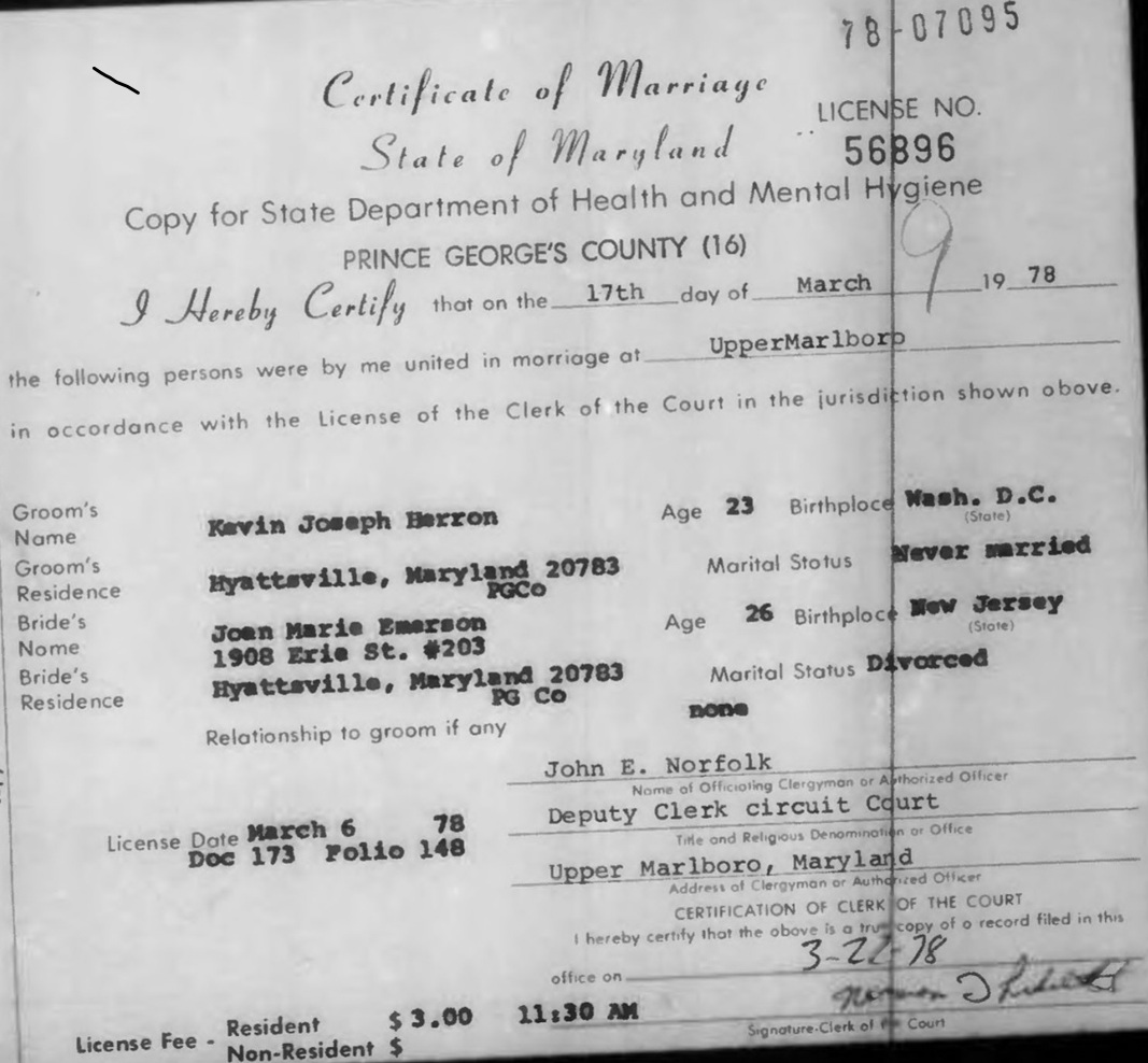 Kevin Joseph Herron / Joan Marie (nee McCabe) Emerson