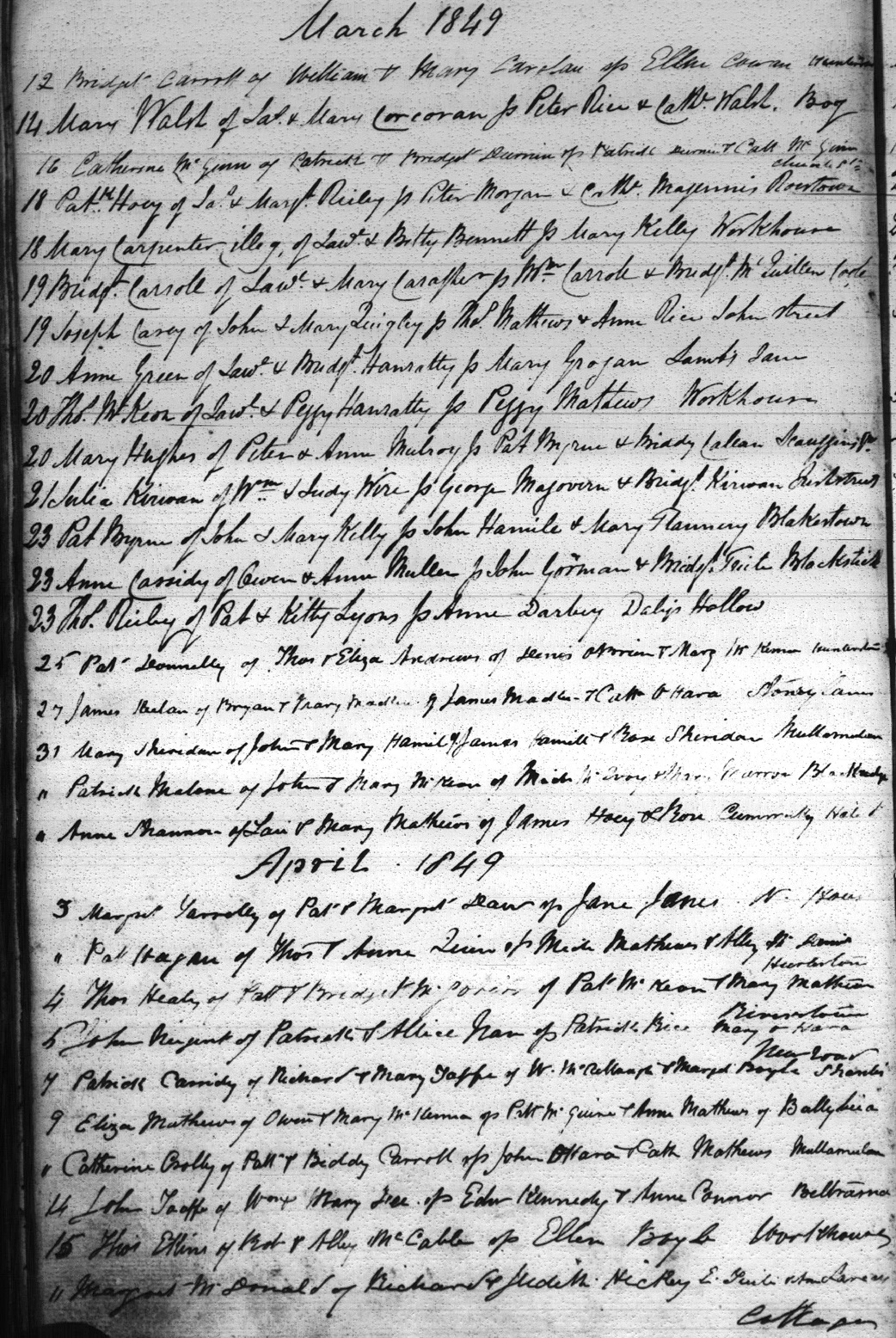 Patrick Hoey Baptized March 18, 1849 Ardee, Co. Louth, Ireland