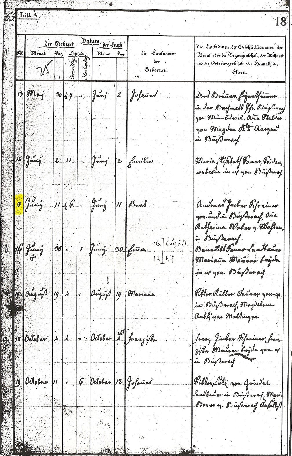 Note 2: Column headings are sequential number, birth date & time (am or pm), baptism month & day, child's name and parental infomation.