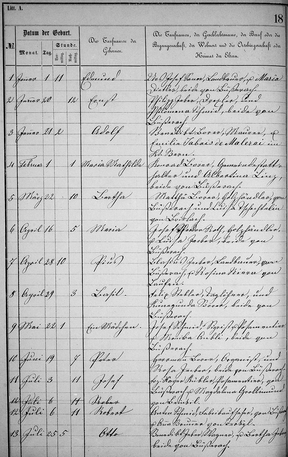 Note 2: Column headings are sequential number, birth date & time (am or pm), child's name and parental infomation.