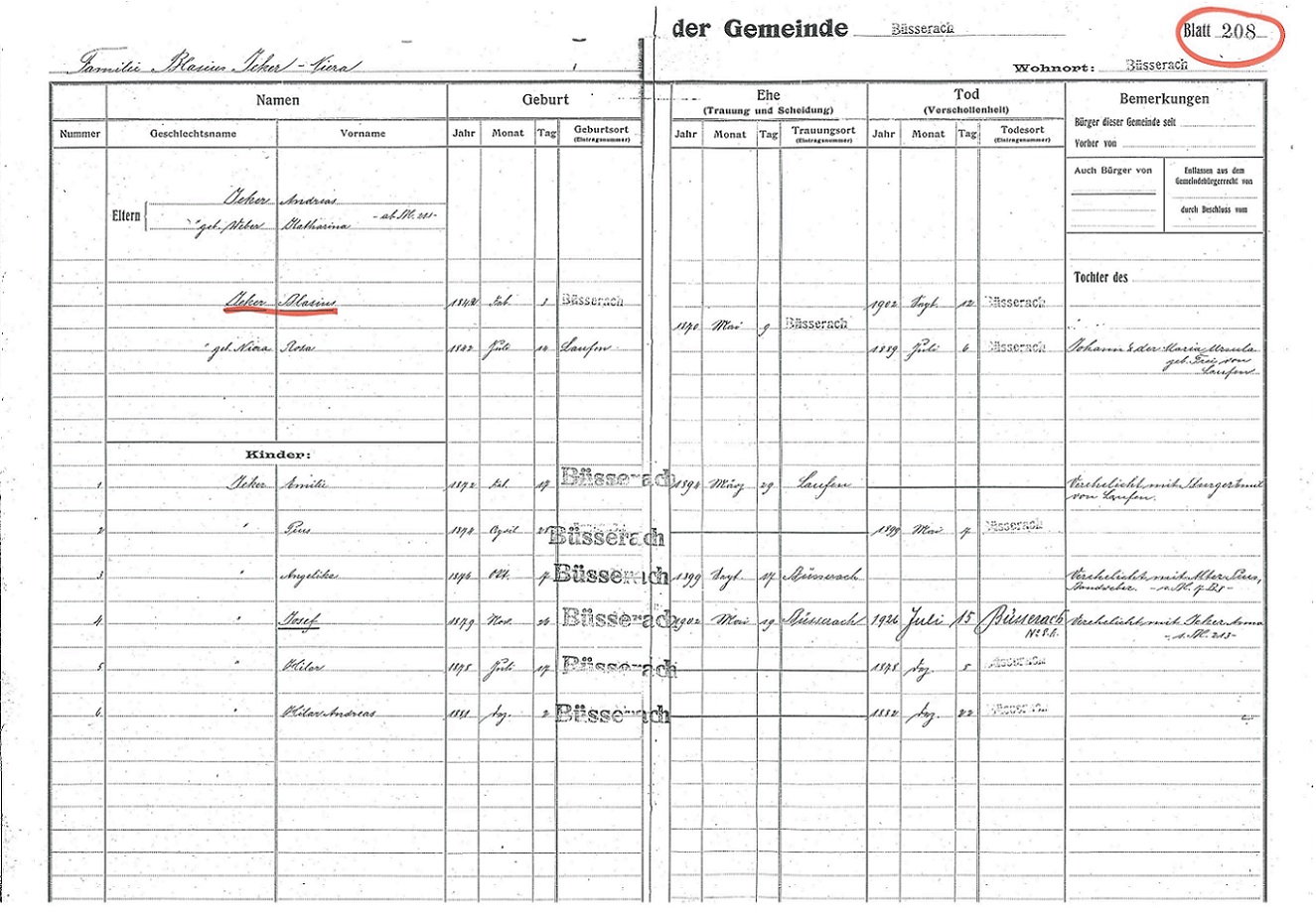 Note 1: The entry for Blasind and Rose Jecker's daughter Emily says Emily was born in Büsserach, but Emily was born in Laufen.