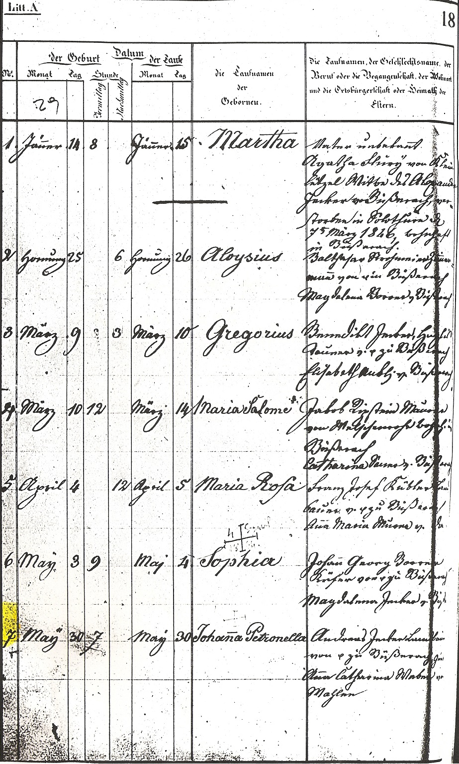 Note 2: Column headings are sequential number, birth date & time (am or pm), baptism month & day, child's name and parental infomation.