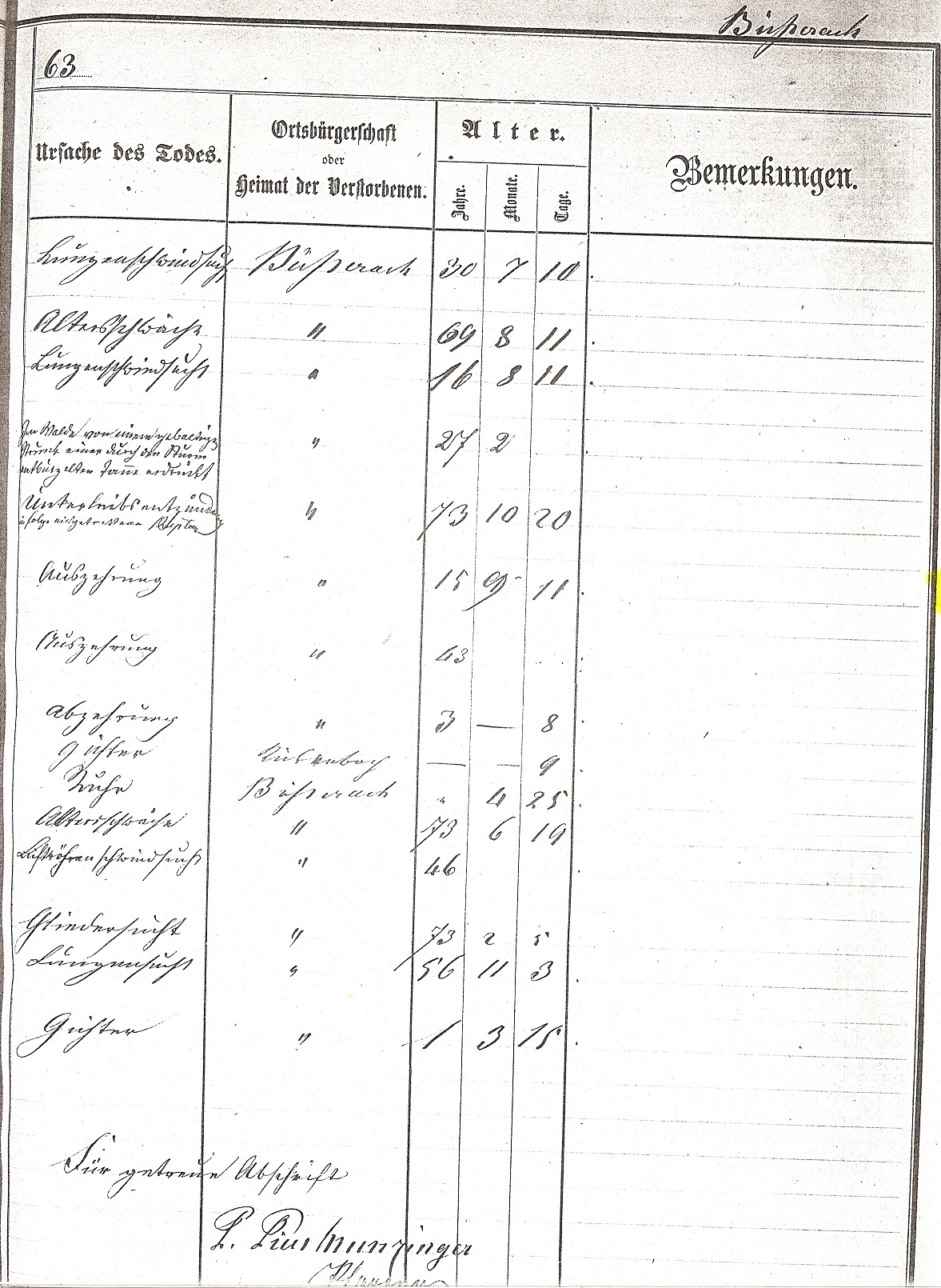 Note 2: Column headings are cause of death, home of deceased, age and remarks.