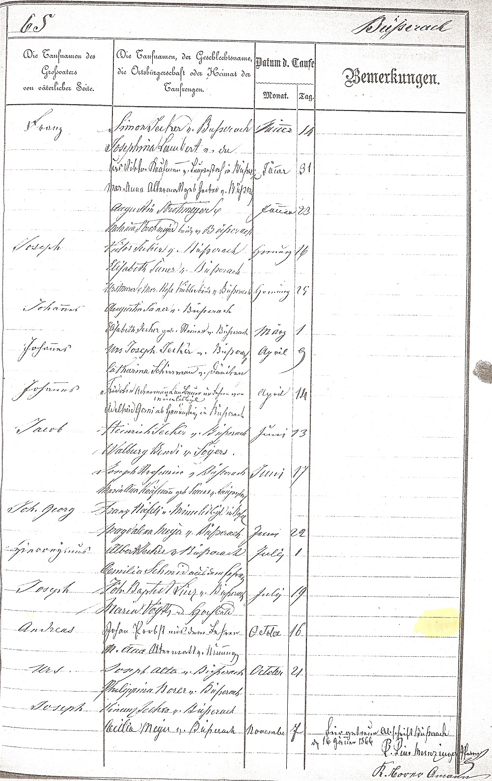 Note 2: Column headings are paternal grandfather's name, sponsors, baptismal date, and remarks.