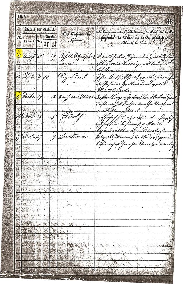 Note 2: Column headings are sequential number, birth date & time (am or pm), child's name, and parental information.