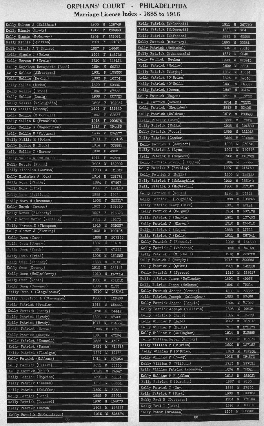 William P. Kelly Marriage Index Record Philadelphia, PA - 1900 License # 127183