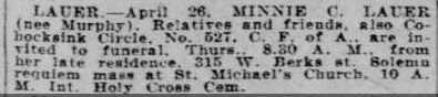 Larry's Joseph and Minnie (nee Murphy) Lauer Family Page