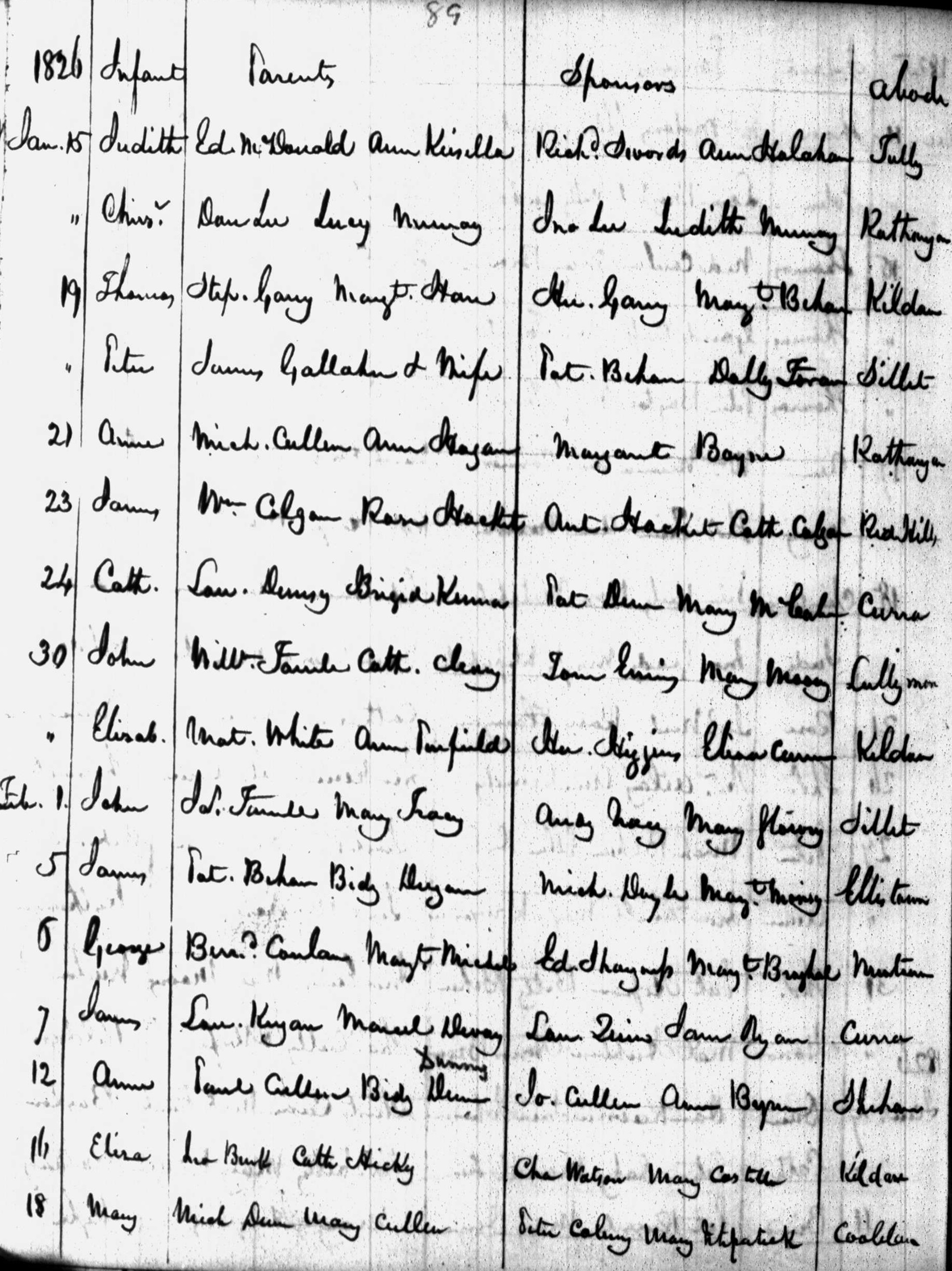 Note 1: Kildare and Rathangan Parish - NLI microfilm 04207/08, Page 48