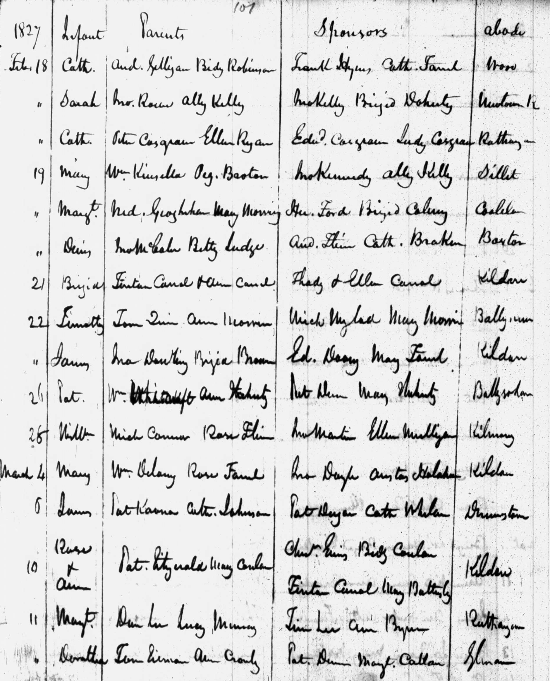 Note 1: Kildare and Rathangan Parish - NLI microfilm 04207/08, Page 54