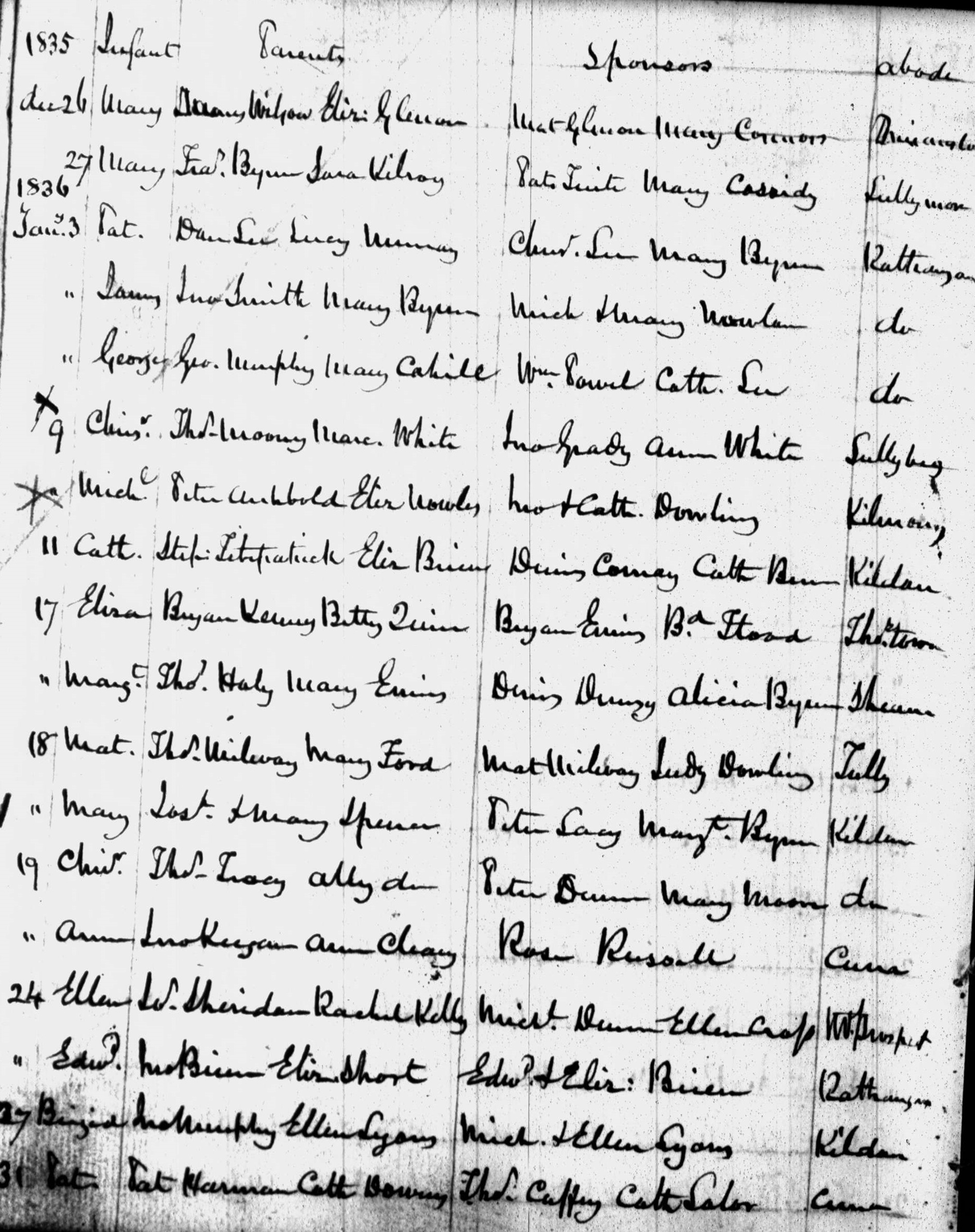 Note 1: Kildare and Rathangan Parish - NLI microfilm 04207/08, Page 103